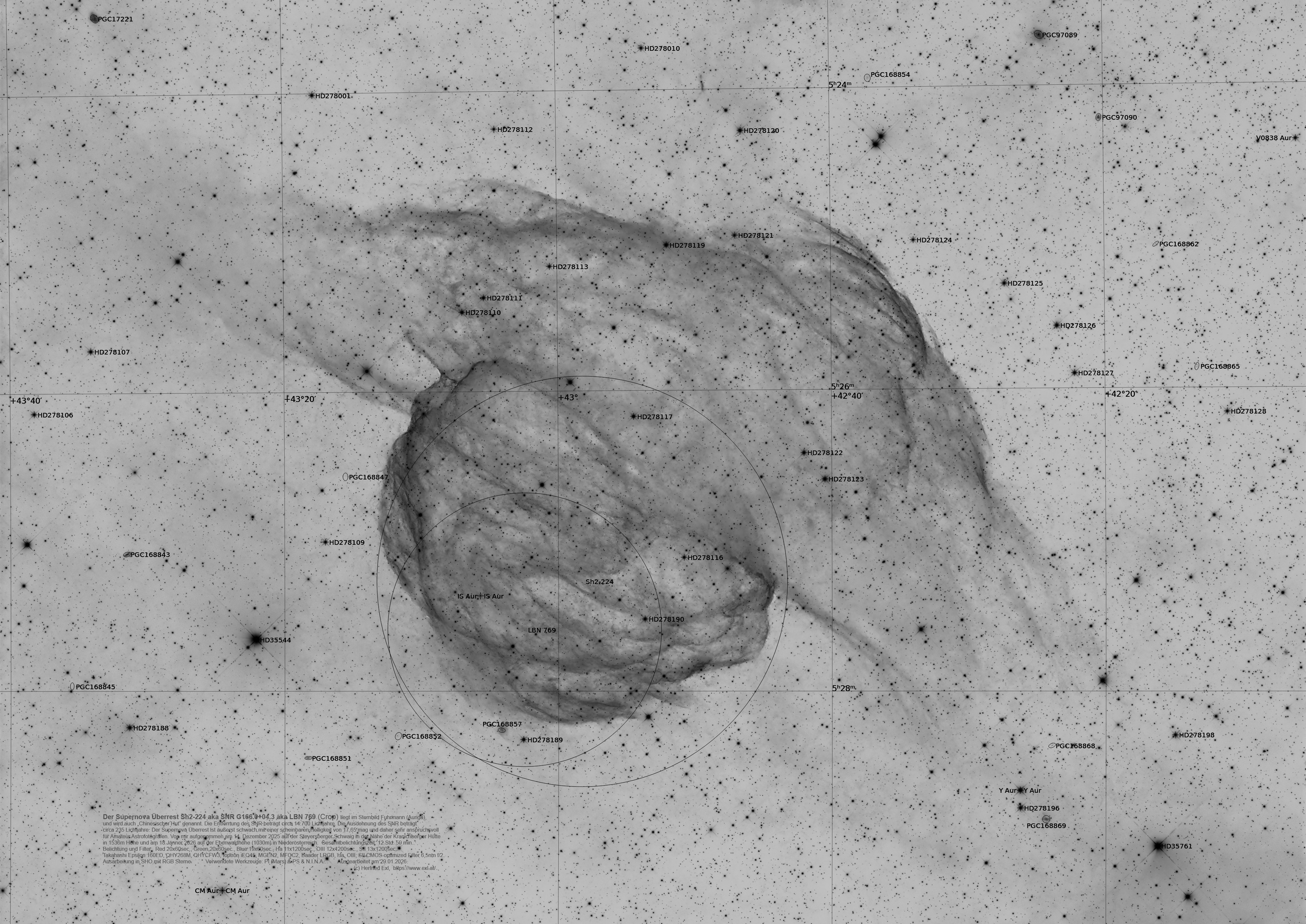 Der Supernova Überrest Sh2-224 aka SNR G166.0+04.3 aka LBN 769 (Crop) liegt im Sternbild Fuhrmann (Auriga), und wird auch „Chinesischer Hut“ genannt.